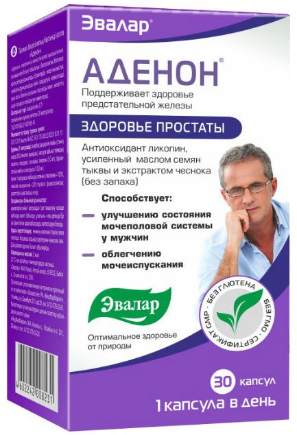 Биологически активная добавка к пище от компании Эвалар Аденон от простатита применяется для лечения в комплексной терапии, а также профилактики заболеваний мочеполовых органов, особенно простатита, аденомы простаты. Быстро снимает боль, восстанавливает мочеиспускание, предупреждает задержку мочи. Работает в первые минуты после приема, безопасна для организма, не имеет побочных действий и аллергических реакций.