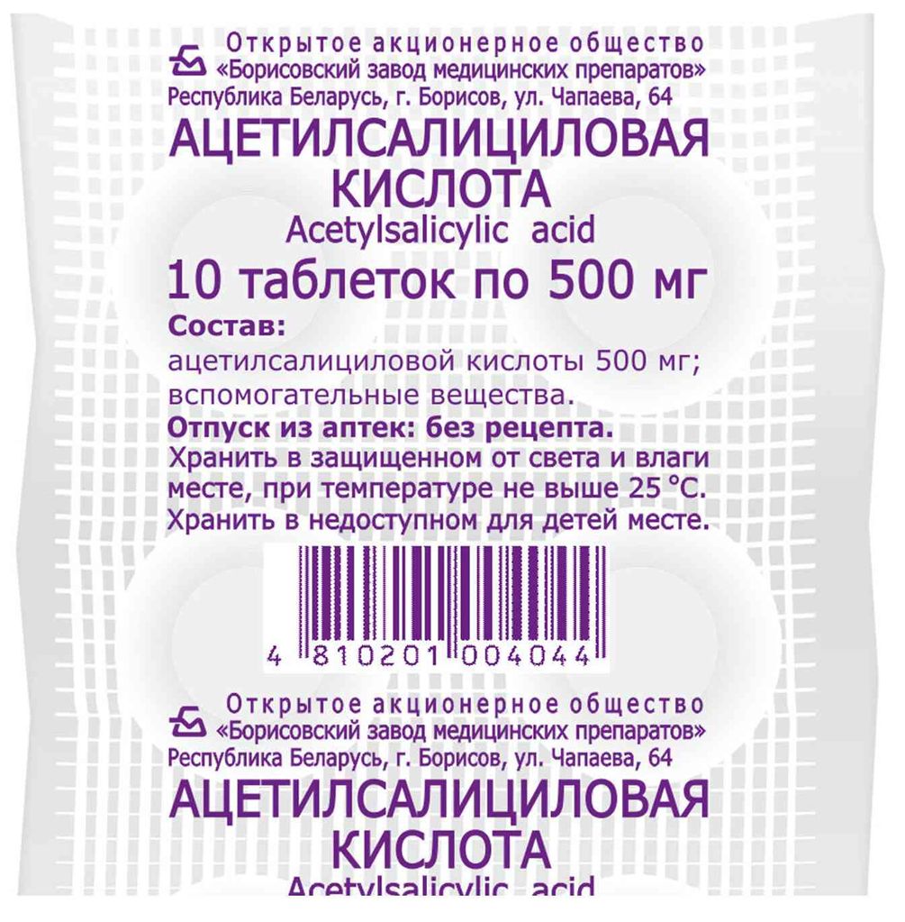 Действующие вещества: ацетилсалициловая кислота