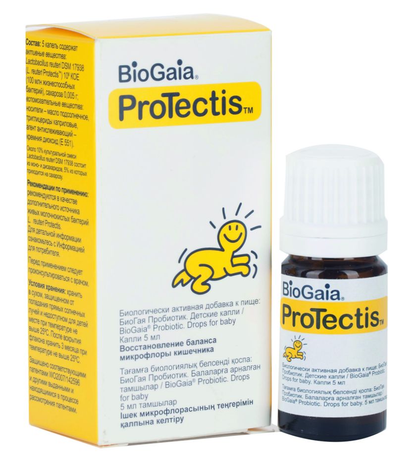 Lactobacilli reuteri Protectis отвечают за поддержание и регулирование физиологического равновесия кишечной микрофлоры, а также процесса пищеварения. Бактерии способствуют расщеплению лактозы и поддерживают жизнедеятельность других полезных микроорганизмов, продуцируя уксусную и молочную кислоты.