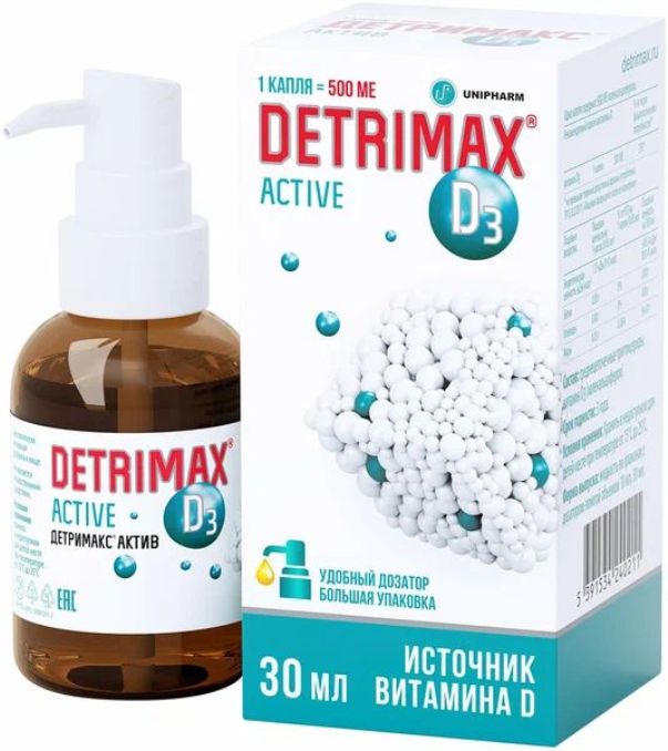 Детримакс Актив содержит витамин D3 (колекальциферол) — жизненно важный жирорастворимый витамин, необходимый для обеспечения деятельности практически всех органов и систем человеческого организма.