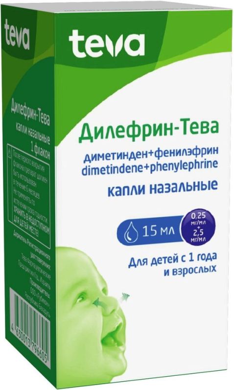Дилефрин-Тева содержит два действующих вещества: диметинден и фенилэфрин.