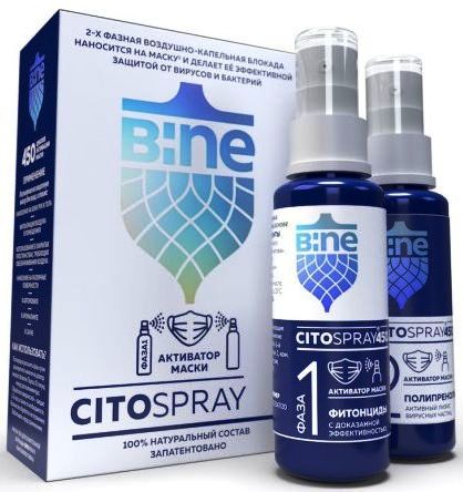 Citospray — двухфазный спрей, воздушно-капельная блокада инфекций, бактерий, вирусов, активатор маски. 100% натуральный дезинфектор для органов верхних дыхательных путей, обезвреживает вирусы, включая COVID, угнетает бактерии в воздухе, защищает от инфицирования человека без возрастных ограничений. Подтверждено исследованиями РАН и НИИ Гриппа. Укрепляет местный иммунитет верхних дыхательных путей. Обладает приятным хвойным ароматом. ФИТОНЦИДЫ и ПОЛИПРЕНОЛЫ в составе Cito spray расщепляют оболочку патогенных микроорганизмов, лишая вирус способности заражать организм. Цитоспрей — природный антисептик без спирта на водной основе, разработан совместно с учеными. Не сушит, не липнет. Сертифицирован по ГОСТ, изготовлен из экологически чистого сырья.