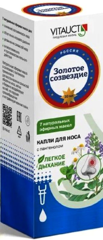 Капли Золотое созвездие от «Витаукт» оказывают выраженное антисептическое действие на слизистую носовой полости, защищая ее от вирусов и бактерий. Не вызывает привыкания.