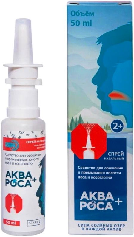 Капли назальные «АкваРоса+» — это гипертонический раствор (2%) озерной соли (рапы) объемом 18 мл. Капли используется для устранения симптомов ОРВИ, хронических заболеваний ЛОР-органов и аллергических реакций. Капли особенно удобны и безопасны для применения у детей, так как не оказывают дополнительного давления на слуховую трубу.