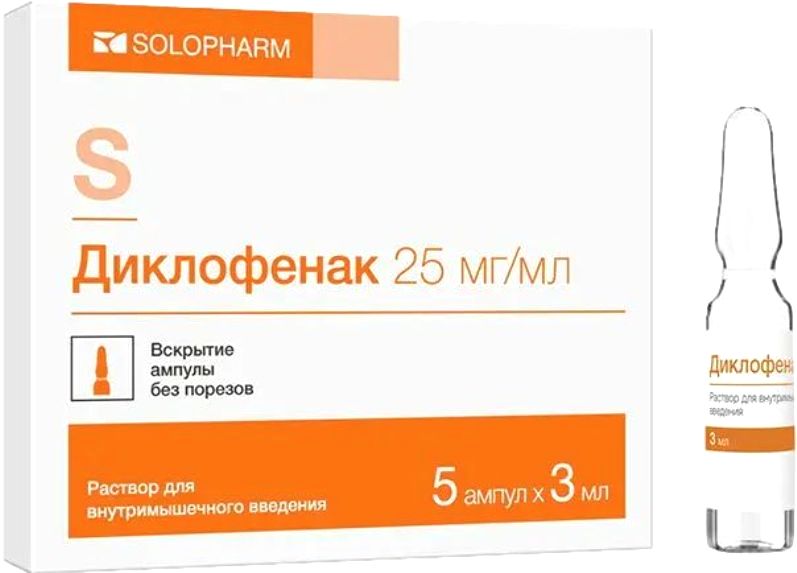 диклофенак-солофарм раствор 25мг/мл амп. 3мл №5