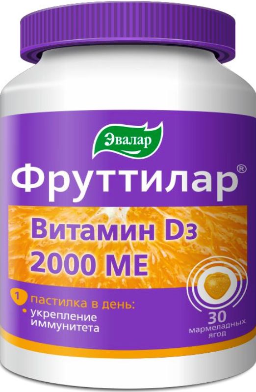ФРУТТИЛАР ВИТАМИН Д3 600МЕ ПАСТИЛКИ ЖЕВАТЕЛЬНЫЕ - для тех, кто хочет получать не только пользу от витамина D3, но и порадовать себя приятным вкусом. Он отличается уникальной формой выпуска - мармеладные ягоды.