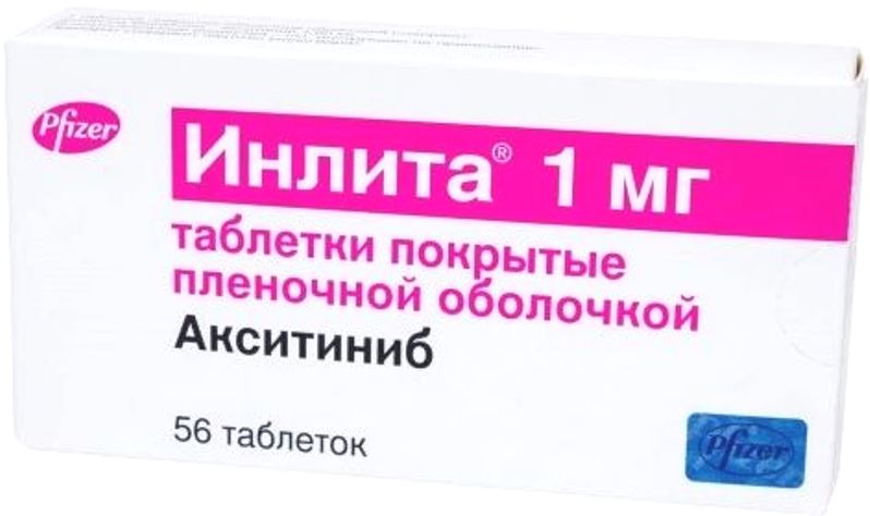 Ингибиторы изоферментов CYP3A4/5. Следует избегать одновременного применения акситиниба с мощными ингибиторами изоферментов CYP3A4/5 (в частности, с кетоконазолом. итракопазолом. кларитромицином, эритромицином, атазанавиром. индинавиром. нефазодоном, нелфинавиром, рптонавиром, саквинавиром, телитромицииом и вориконазолом). Одновременное применение с кетоконазолом (мощным ингибитором изоферментов CYP3A4/5), приводит к повышению концентрации акситиниба в плазме крови у здоровых добровольцев. Грейпфрут или грейпфрутовый сок также могут повышать концентрацию акситиниба в плазме крови, и их одновременного применения следует также избегать. Рекомендуется подбор альтернативных препаратов, не ингибирующих изоферменты CYP3A4/5 или ингибирующих их активность в минимальной степени. При необходимости комбинирования акситиниба с мощными ингибиторами изоферментов CYP3A4/5 рекомендуется снижение его дозы. Ингибиторы изоферментов CYP1A2 и CYP2C19. Изоферменты CYP1A2 и CYP2CI9 поддерживают меньшую часть (< 10 %) путей метаболизма акситиниба. Влияние мощных ингибиторов этих изоферментов на фармакокинетику акситиниба не изучалось. Следует соблюдать осторожность при одновременном применении акситиниба и мощных ингибиторов изоферментов CYP1A2 и CYP2CI9, так как при этом концентрация акситиниба в плазме крови может повышаться. Индукторы изоферментов CYP3A4/5. Следует избегать одновременного применения акситиниба с мощными индукторами изоферментов CYP3A4/5 (в частности, рифамппцином. дексаметазоном. фенитоином, карбамазепином. рифабутином, рифапентином, фенобарбиталом и препаратами зверобоя продырявленного [Hypericum perforatum]). Рифамипцин (мощный индуктор изоферментов CYP3A4/5) снижает средние значения AUC акситиниба у здоровых добровольцев. Рекомендуется подбор альтернативных препаратов, не индуцирующих изоферменты CYP3A4/5 или индуцирующих их активность в минимальной степени, для комбинирования с акситинибом. Средние ингибиторы изоферментов CYP3A4/5 (такие как бозентан. эфавиренз, этравирин, модафинил и нафциллин) также могут снижать концентрацию акситиниба в плазме крови, и их одновременного применения следует по возможности избегать. Индукция изофермеита CYP1A2 во время курения. Изофермснт CYP1A2 поддерживает меньшую часть (< 10 %) путей метаболизма акситиниба. Влияние индукции изофермента CYPIA2, вызванной курением, па фармакокинетику акситиниба полностью не изучено. Следует учитывать возможность снижения концентрации акситипиба в плазме крови при применении акситиниба у курильщиков. Исследования способности акситиниба к ингибированию и индукции цитохрома Р450 и уридии 5'-дифосфат-глюкуронозилтрансферазы (UGT) in vitro. Было показано in vitro, что акситиииб в терапевтических концентрациях в плазме крови не ингибирует активность изоферментов CYP2A6. CYP2C9, CYP2CI9, CYP2D6, CYP2E1, CYP3A4/5 или UGTIA1. В исследованиях in vitro также отмечалось, что акситиииб обладает потенциальной способностью к ингибированию активности изофермента CYPIA2. Поэтому одновременный прием акситиниба с субстратами изофермента CYPIА2 может приводить к повышению концентрации последних (например, теофиллииа) в плазме крови. В исследованиях in vitro также было показано, что акситиниб обладает потенциальной способностью ингибировать изофермепт CYP2C8. Однако одновременное применение акситиниба с паклитакселом, являющимся субстратом изофермента CYP2