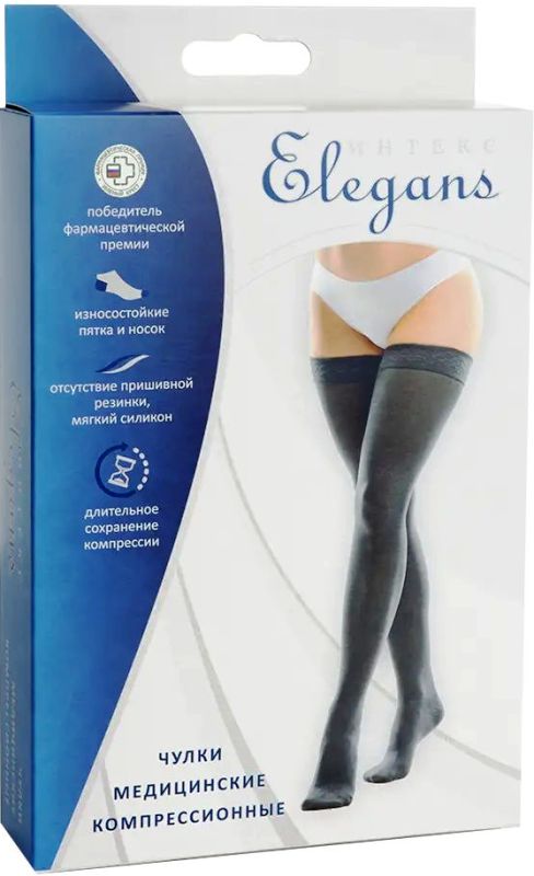 интекс элегантс чулки женские 2кл/комп 23-32мм xl черный [inteks]