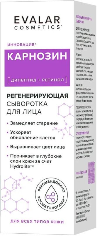 карнозин сыворотка д/лица регенерирующая 30мл эвалар