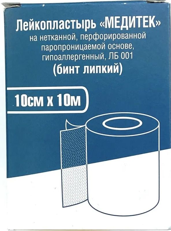 медитек бинт фиксирующий липкий перфориров 10см*10м неткан