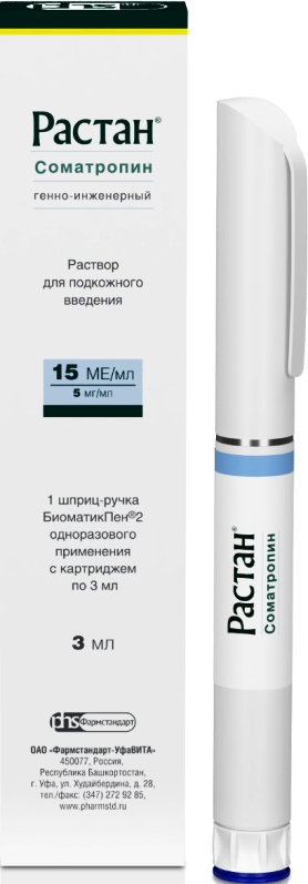 На фоне лечения Растаном возможно потребуется коррекция доз гипогликемических препаратов у больных сахарным диабетом, может произойти манифестация латентно протекающего гипотериоза, а у пациентов, получающих левотироксин натрия, могут появиться признаки гипертиреоза. Во время лечения необходимо контролировать состояние глазного дна, особенно, при симптомах внутричерепной гипертензии. Отек зрительного нерва требует отмены препарата. Обнаружение хромоты на фоне терапии соматропином требует тщательного наблюдения. Необходимо менять места подкожных инъекций в связи с возможностью развития липоатрофий. Во время трансплантации почки лечение препаратом следует отменить.