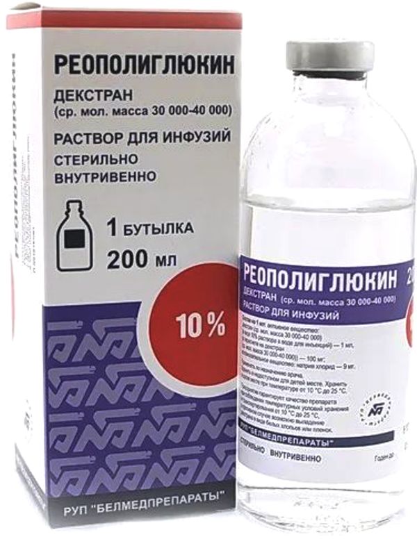 Патологические состояния, сопровождающиеся нарушением циркуляции крови в периферических сосудах, шок; для дезинтоксикации (выведения из организма вредных веществ) при ожогах, перитоните (воспалении брюшины) и др. Реополиглюкин назначают при заболеваниях сетчатки и зрительного нерва (осложненной миопии, дистрофии сетчатки и др.), воспалительных процессах роговицы (прозрачной оболочки глаза) и сосудистой оболочки глаза