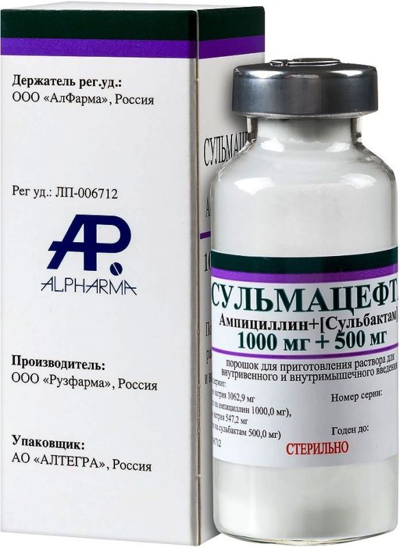 сульмацефта порошок д/р-ра вв/вм 500мг+250мг фл. №1
