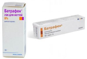 Лак для ногтей. Перед первым нанесением препарата Батрафен®, лак для ногтей, следует удалить ножницами максимально возможное количество пораженного ногтя и надпилить пилочкой оставшуюся ногтевую пластинку для создания неровной поверхности. Лак наносится тонким слоем на пораженный ноготь 1 разв день через сутки в течение первого месяца, в течение второго — 2 раза в неделю, в течение третьего — 1 раз в неделю. 1 раз в неделю (например в воскресенье) лак удаляют с помощью обычного растворителя или после теплой ванночки соскабливают, при этом ножницами снова следует удалить подрастающую пораженную часть ногтевой пластины. Если лаковое покрытие повреждается в период между нанесениями лака, то следует наносить лак вновь только на те участки ногтя, где повреждено лаковое покрытие.